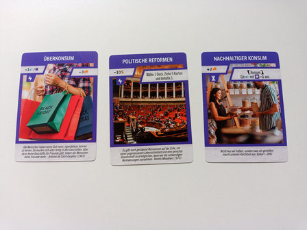 Jede Person verfügt in Limit über ein identisches Deck von politischen Karten. Es handelt sich um 12 Gesellschaftskarten, 13 Produktionskarten und 12 Armee- und Wirtschaftskarten.